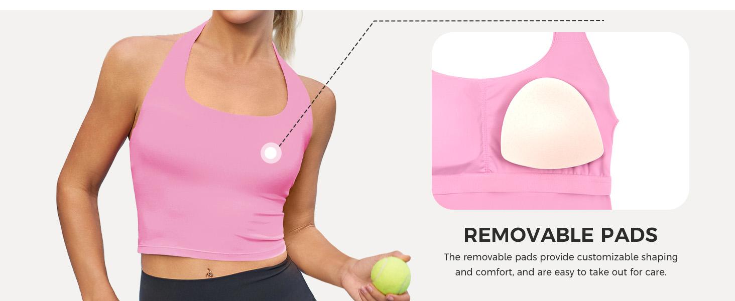 Aoysky Womens Buttery Soft Halter Workout Tank Tops with Built in Bra Cropped Padded Open Back Gym Longline Sports Bras